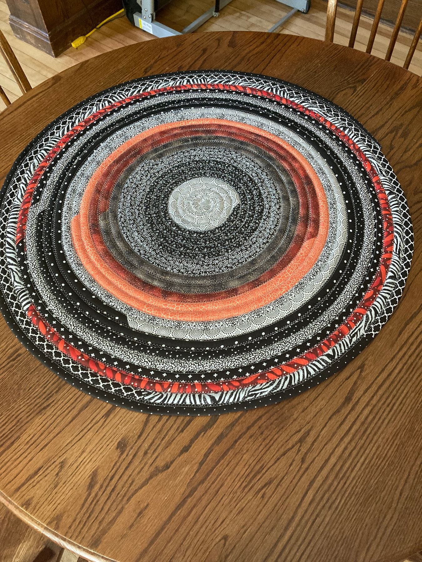 JR3: Black, orange, 31.5" round rug
