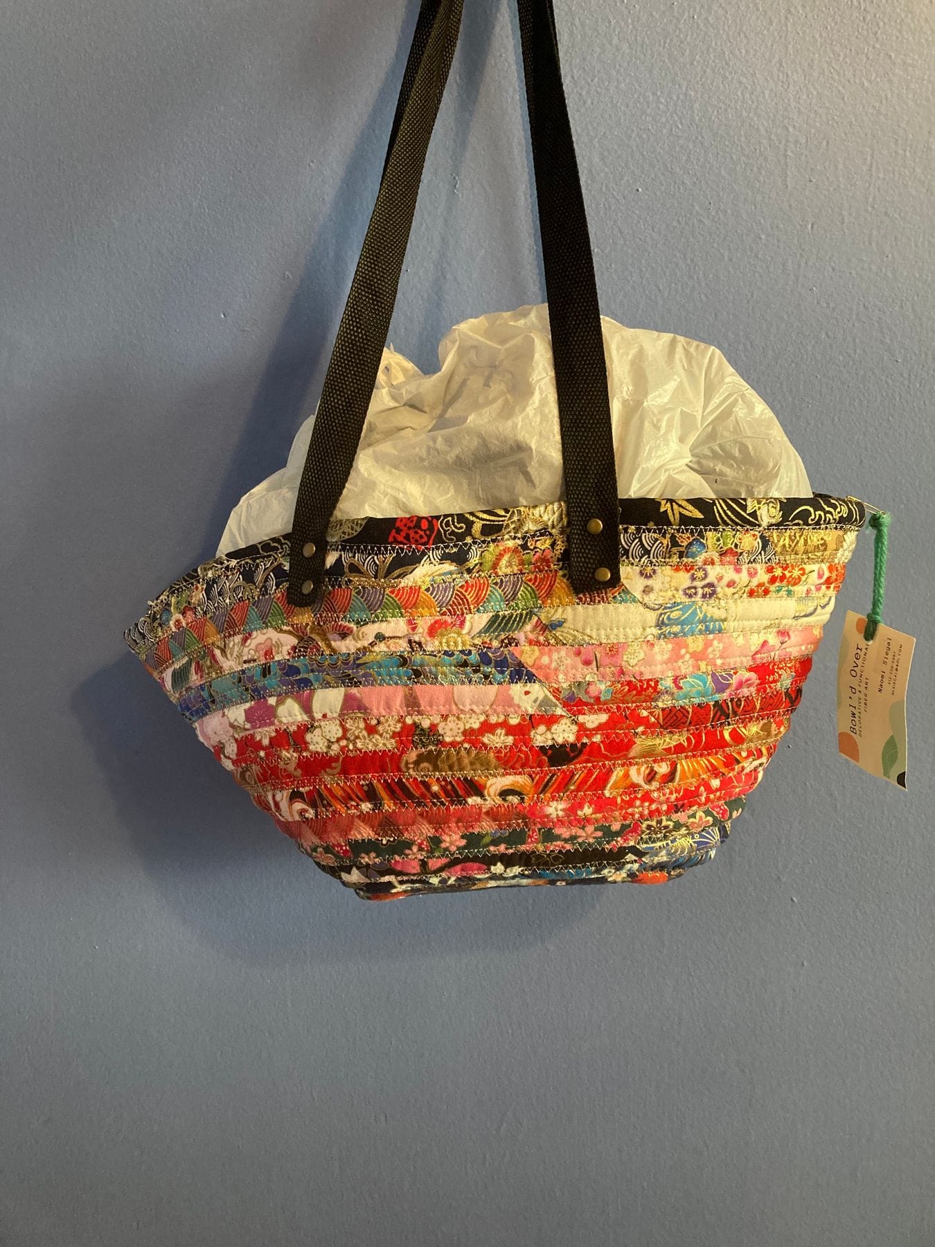 TB 3: Tote bag, red & black, japanese print w/ gold